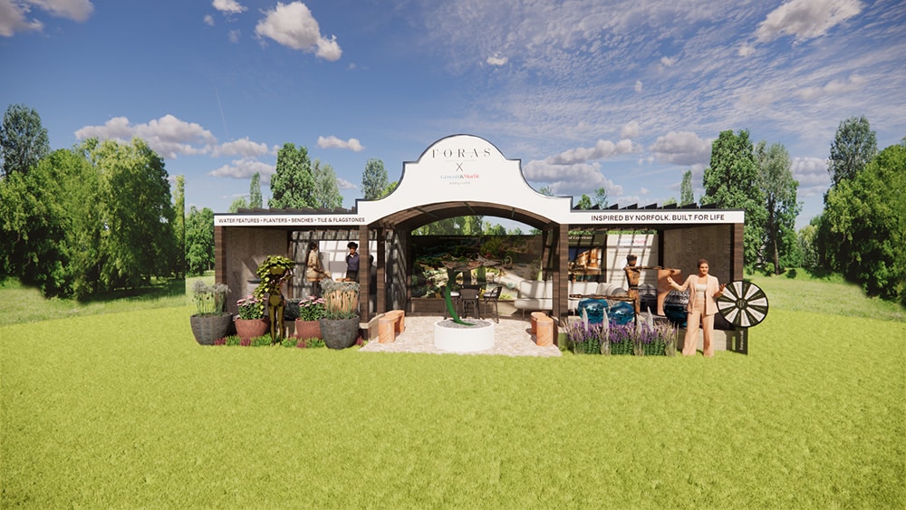 Foras, the Stow Bridge-based water feature, garden accessory and tile & flagstone specialists, will present Head for Flowers: a display garden drawing inspiration from Norfolk’s Bronze Age heritage, its rose-growing legacy, and the skills of some of the county’s most respected makers, growers and designers.