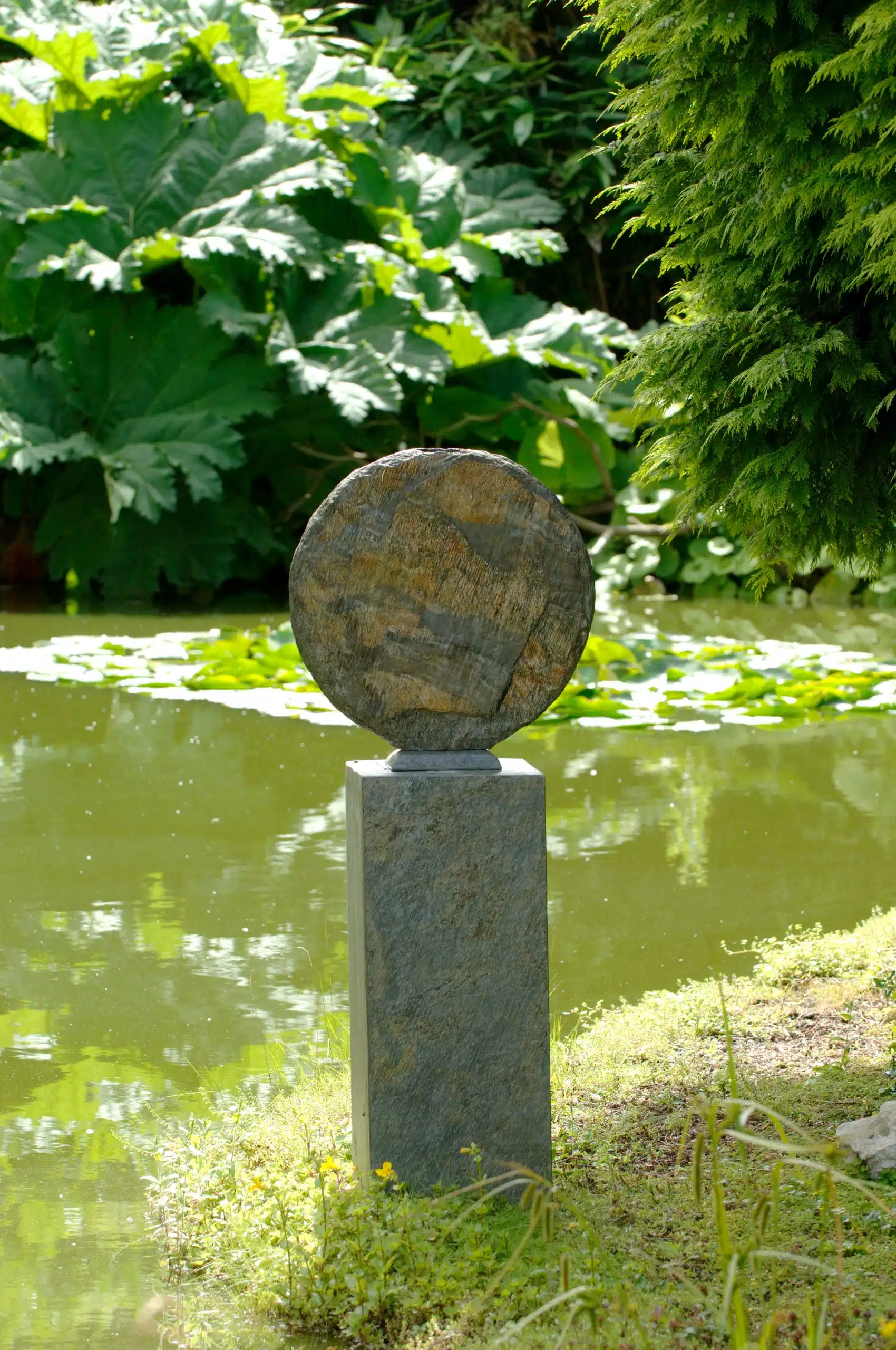 It sits well as a sculptural objet d’art but also looks spectacular when paired with bright planting; the ruggedness of the slate is offset against the gentle forms of vegetation.