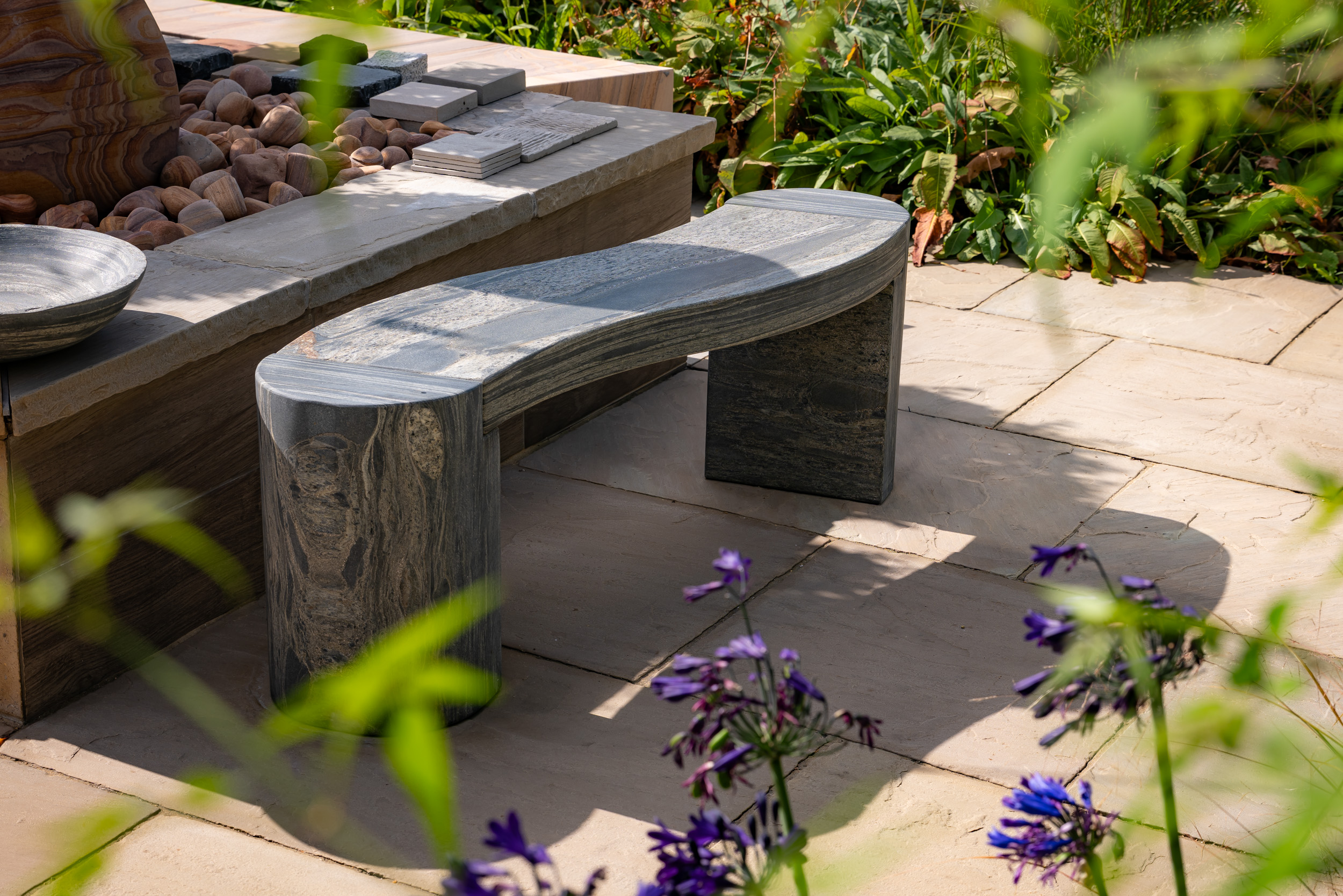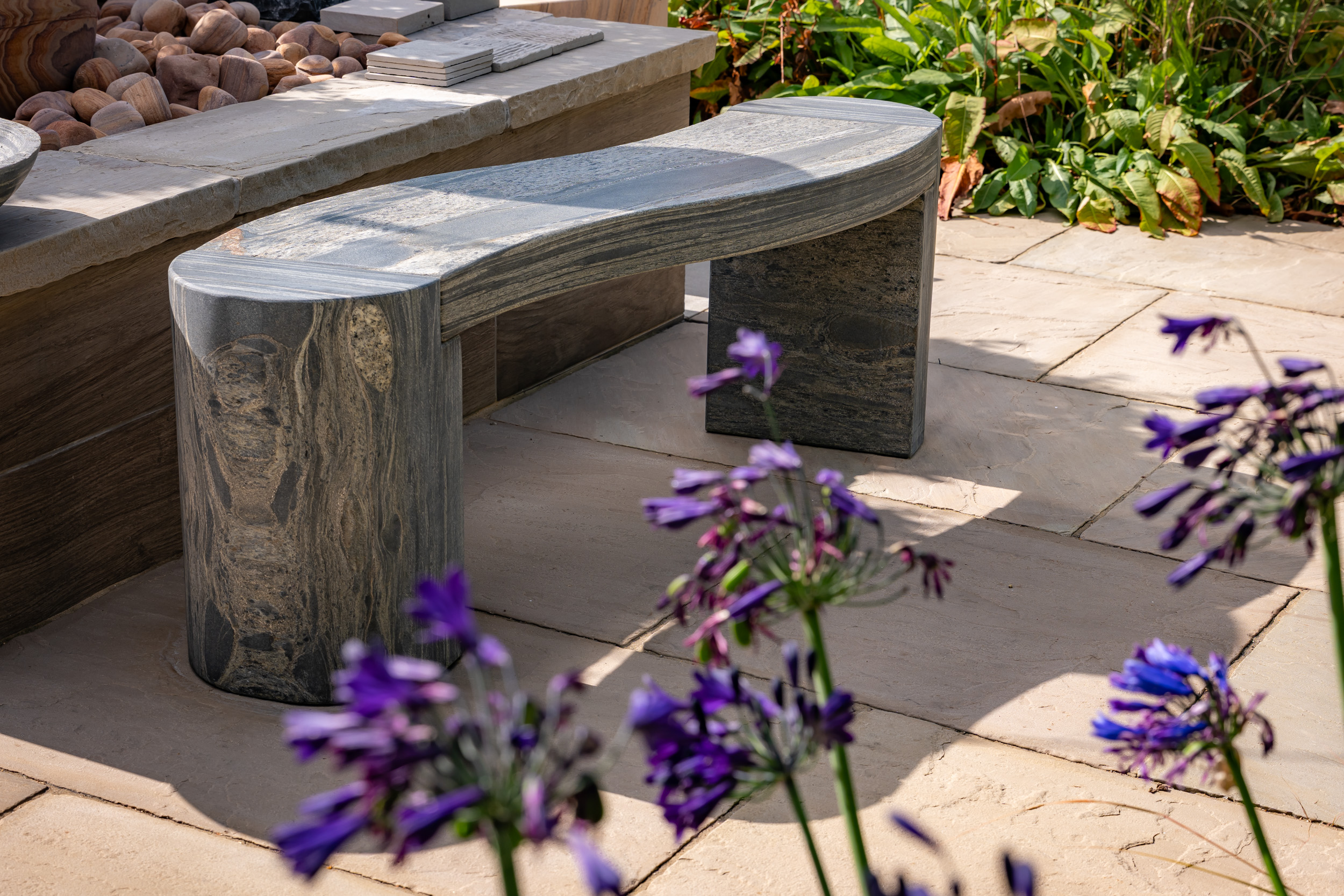 Made from the highest grade natural sandstone, the hues of charcoal, ivory and silver with sprinkles of quartzite are highlighted to perfection across the honed 3 seater bench seat.