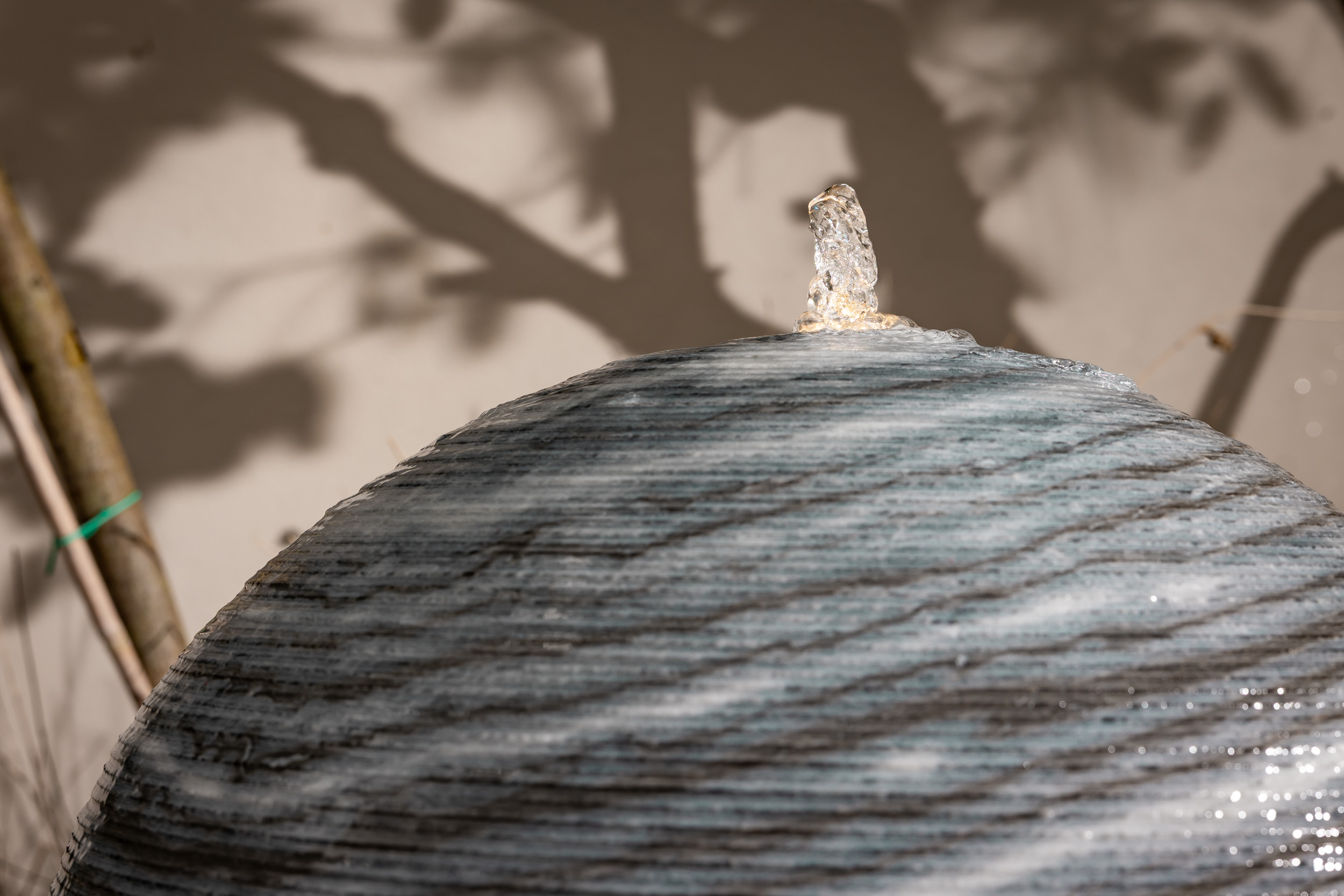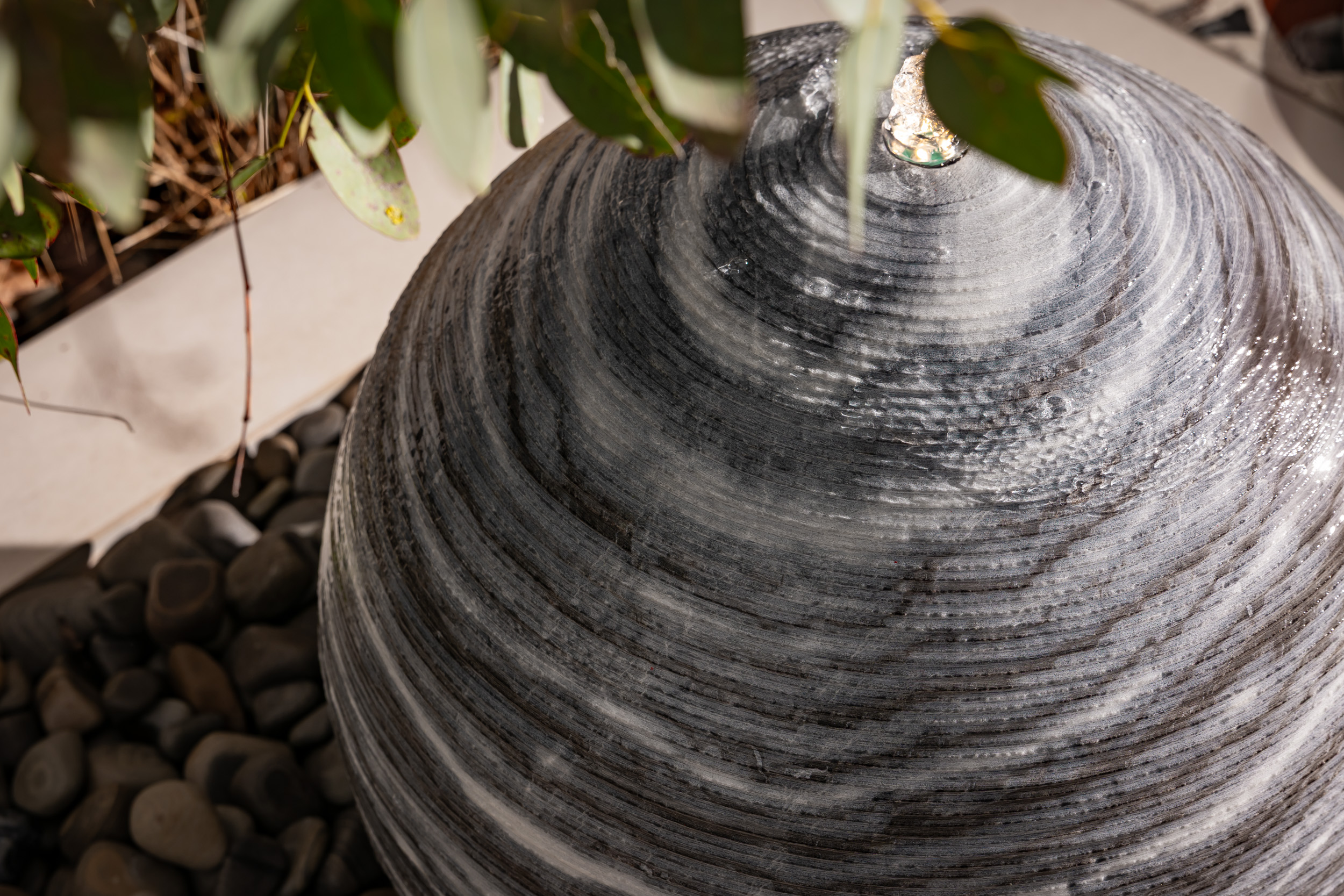 Its 3D textured surface and striking veining catch the light beautifully, while water cascades gently across the marble. Creating a mesmerising play of movement and reflection.
