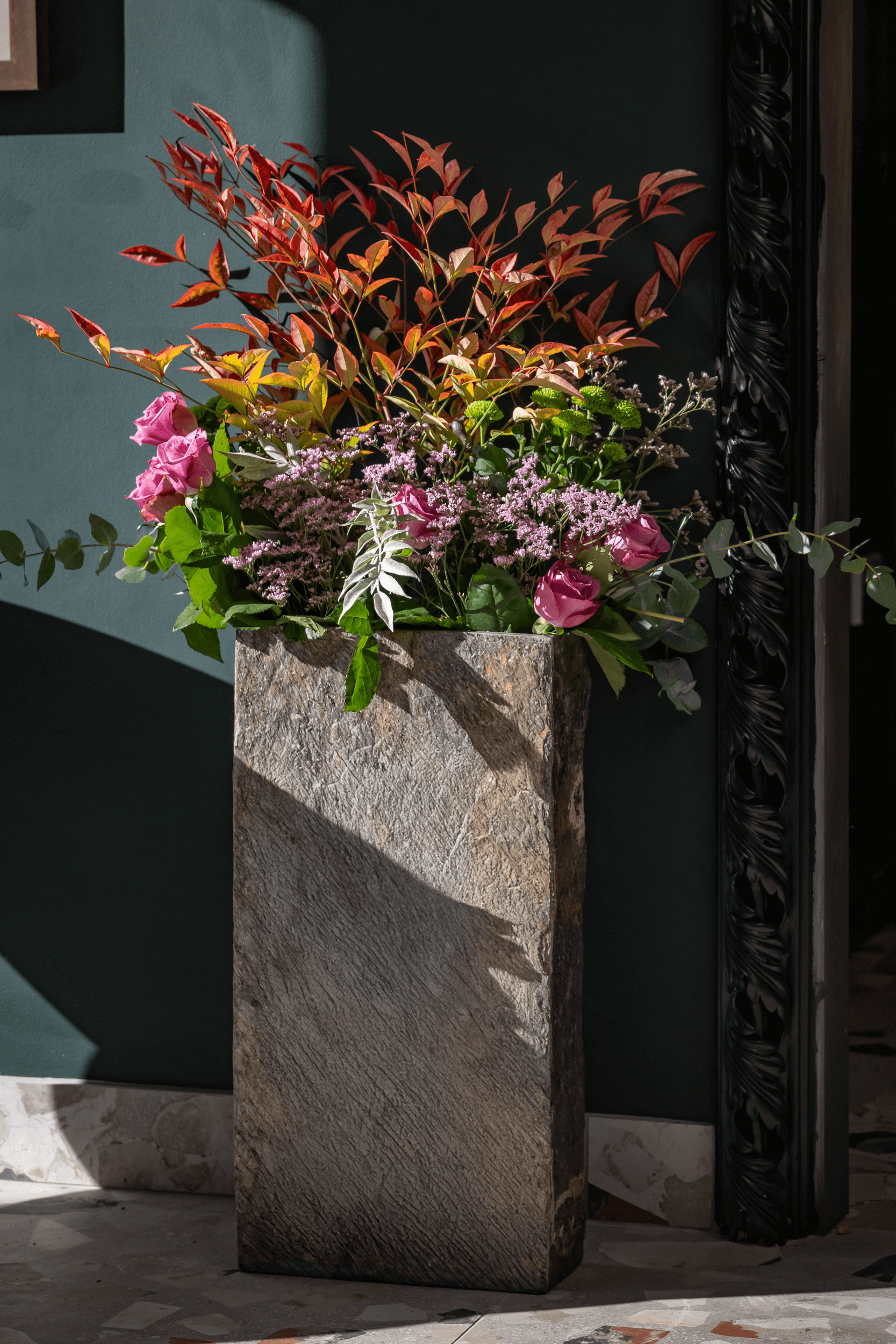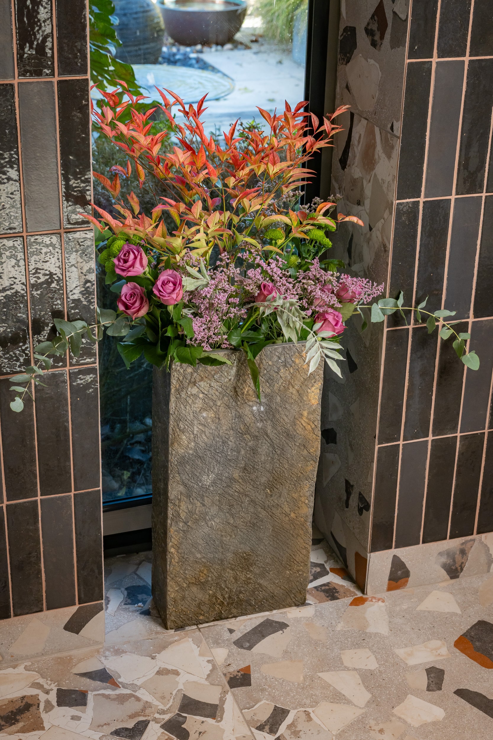 Slate is particularly suitable for use as a planter as it has an extremely low water absorption index, meaning that it is resistant to frost damage.